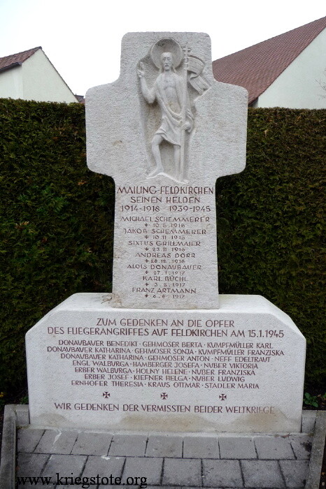 | Beschreibung: | Kriegerdenkmal auf dem Gemeindefriedhof Inschrift: Den Opfern der Weltkriege 1914-1918 1939-1945 gewidmet von der Kuratie Feldkirchen Eure Ehre ist unsere Ehre / Euer Opfer uns Verpflichtung / Friede unser Ziel |