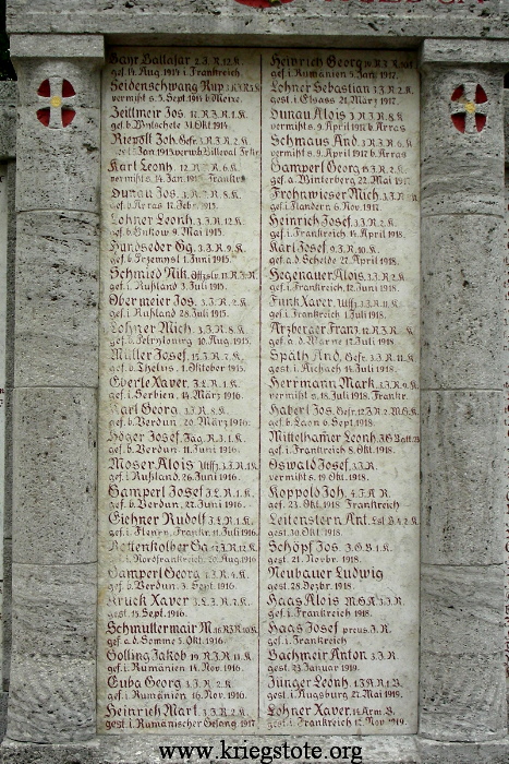 Landkreis: | Aichach-Friedberg | 1. Weltkrieg: | 48 / 5 vermißt | ||||